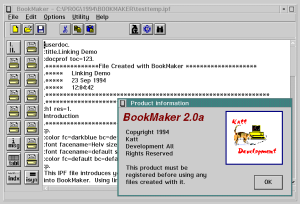 BookMaker assists the user in creating IPF files and compiling them with the IPF (Information Presentation Facility) compiler.