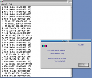 A Presentation Manager ASCII table.